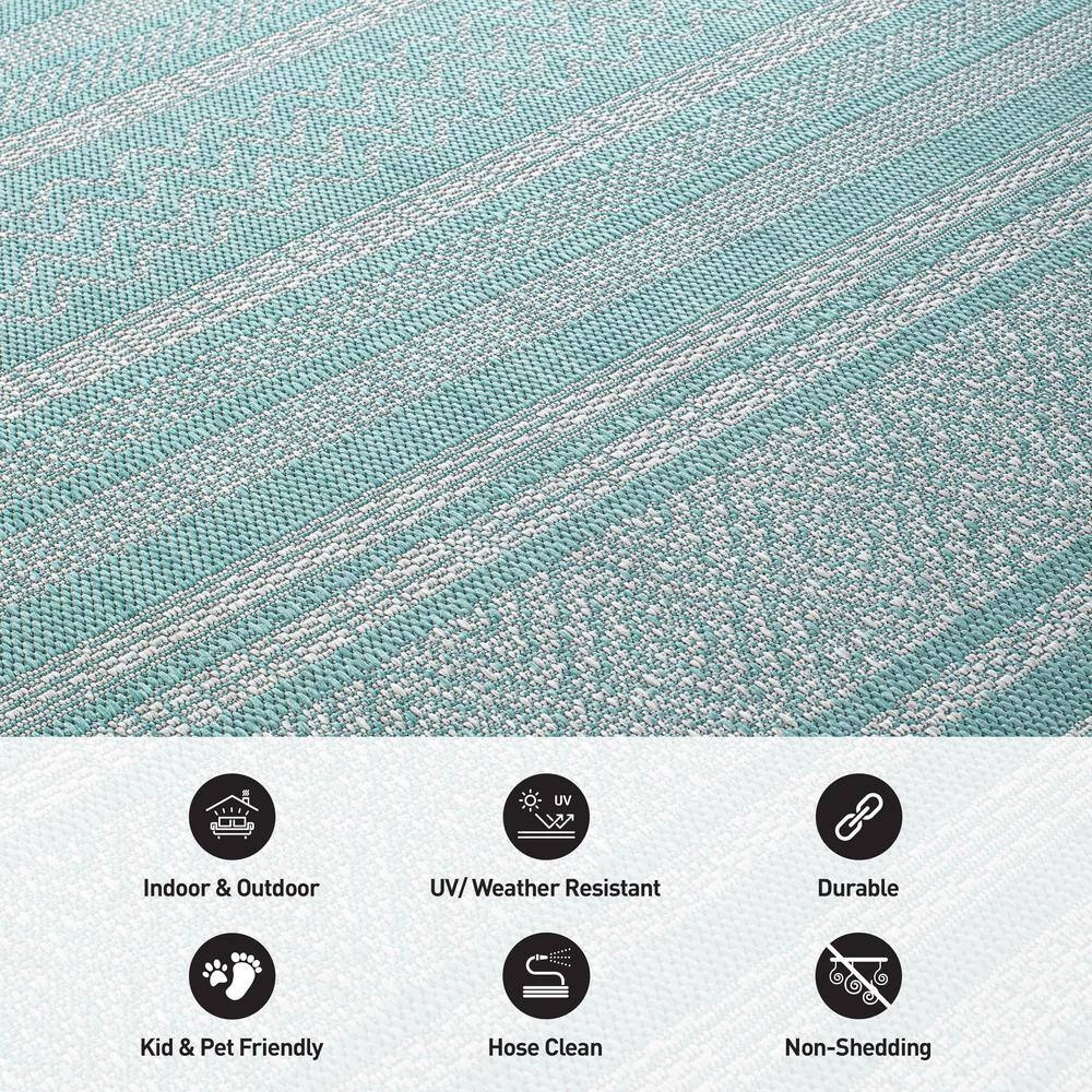 Liven up your indoor or outdoor decor with this modern flatweave rug. It features a tribal geometric bohemian design and vibrant colors. It is easy to maintain by rinsing with a garden hose with soapy water and air drying. For indoor or outdoor use. This collection offers area rugs that are suitable for all indoor/outdoor spaces.