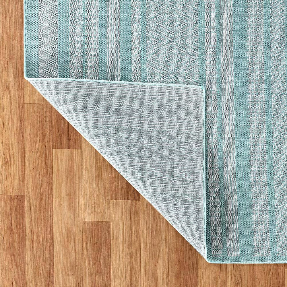 - Synthetic backing, durable indoor/outdoor rug, flatweave weather resistant construction