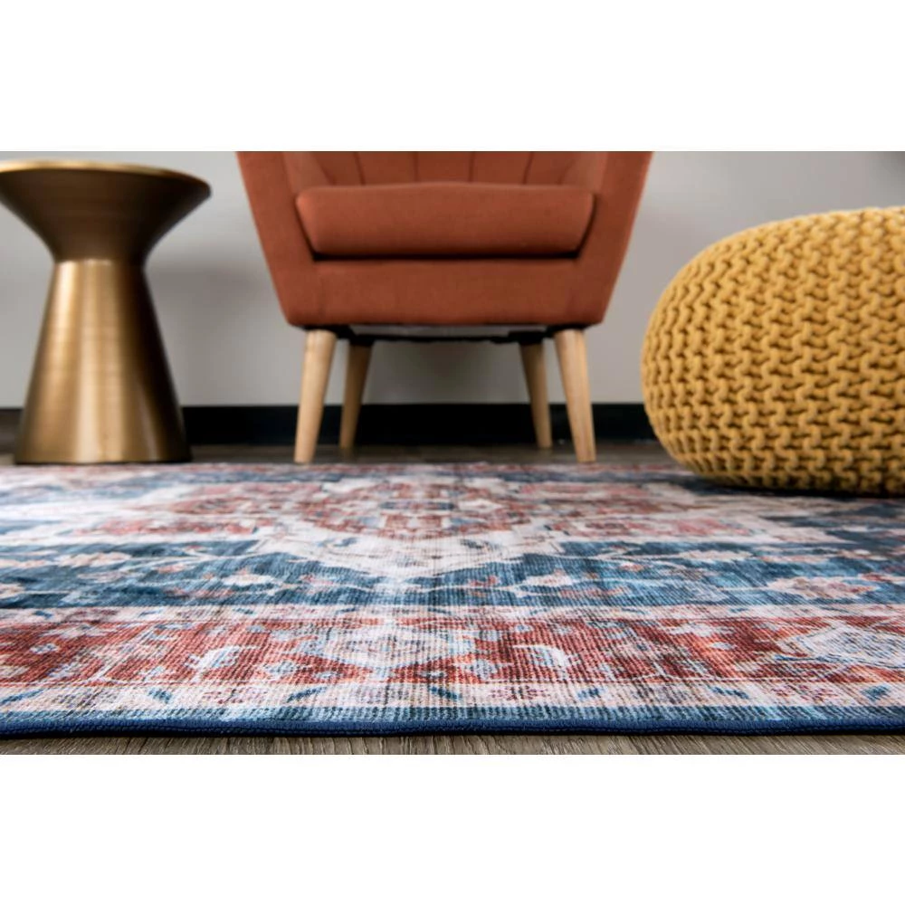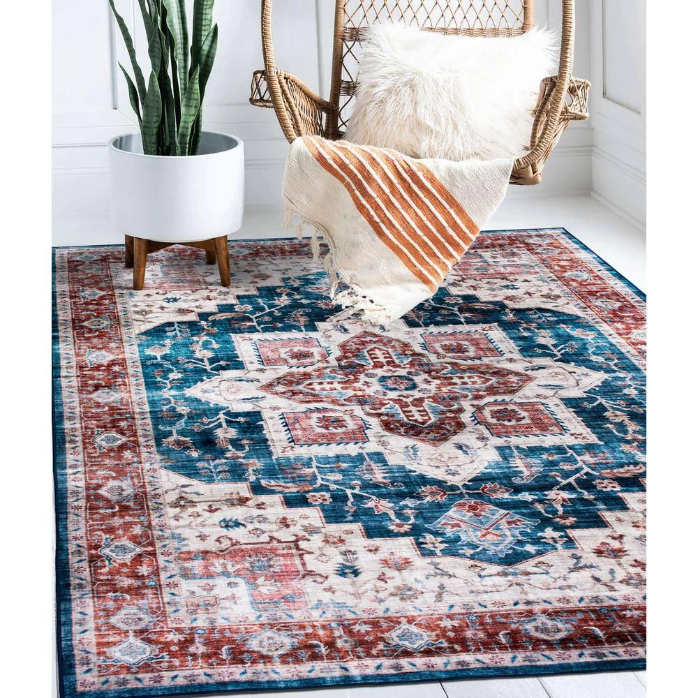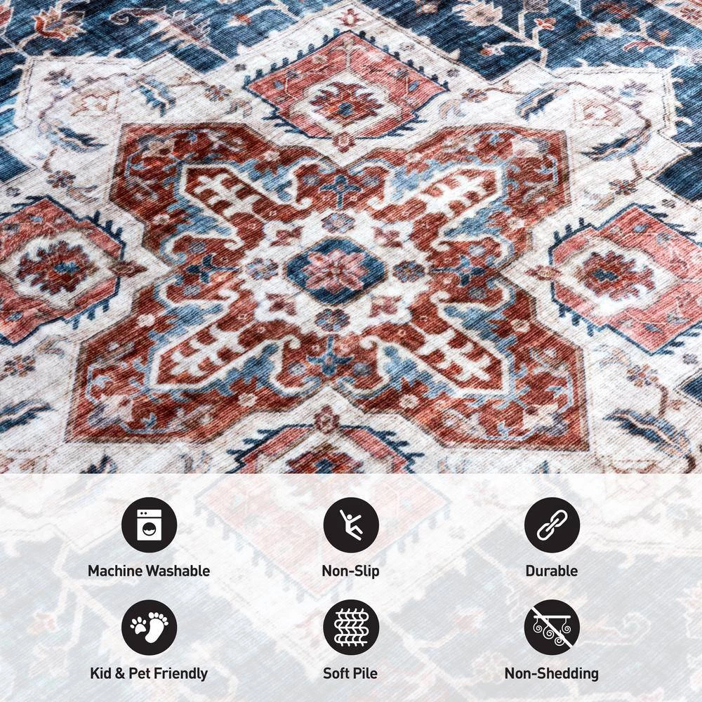 Blue 5 ft. x 7 ft. Distressed Traditional Machine Washable Area Rug by World Rug Gallery