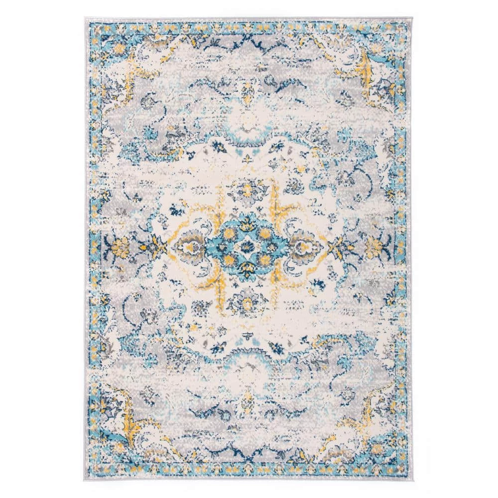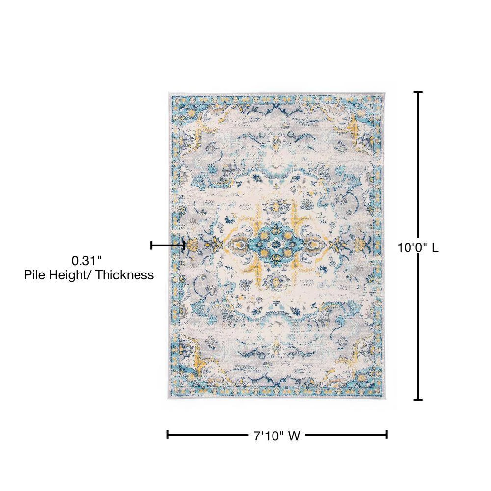Bohemian Distressed Design 7 ft. 10 in. x 10 ft. Blue Area Rug by World Rug Gallery