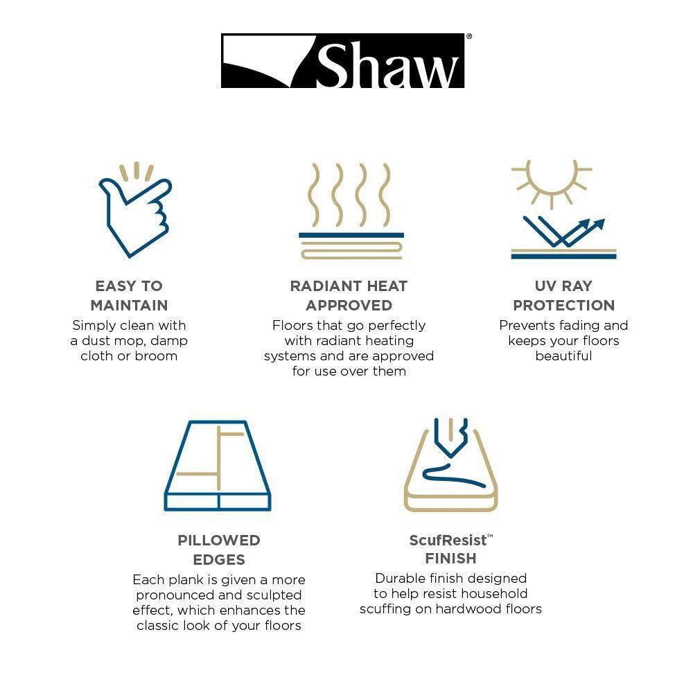 Canaveral Engineered Hardwood Flooring from Shaw Floors emphasizes maple’s mild wood grain and character in a dramatic, wide plank. Subtle scraping creates a soft rolling texture that delicately maintains the clean, modern look. Made in the USA and engineered to resist dents and scuffs, this style is extremely durable and can withstand foot traffic in even the busiest home. These planks are also resistant to UV rays which makes them fade resistant, they’re an excellent choice for both kitchens and other high-traffic areas and will add value to your home.