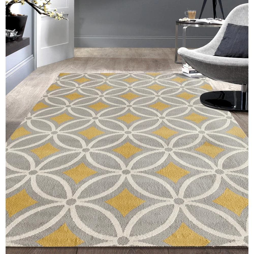 The World Rug Gallery 5 ft. x 7 ft. Area Rug will add both comfort and style to your bedroom. This rug features a stain-resistant construction and fade-resistant materials. It displays a trellis motif, achieving a fresh vibe that mimics window panes. It comes in a gray shade, bringing a subdued touch to any decor. With a 100% polypropylene design, this loomed rug is an especially durable option for your home.