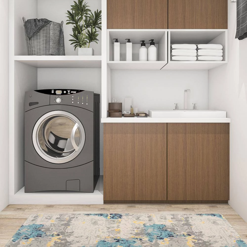 Bring this modern abstract design anti-fatigue Mat to any place in your home, from the entryway to the bathroom, on to the kitchen and laundry room. This Mat makes great use for high foot traffic areas without breaking a sweat. The Rubber backing enables it to stay in place keep durable for your usage.