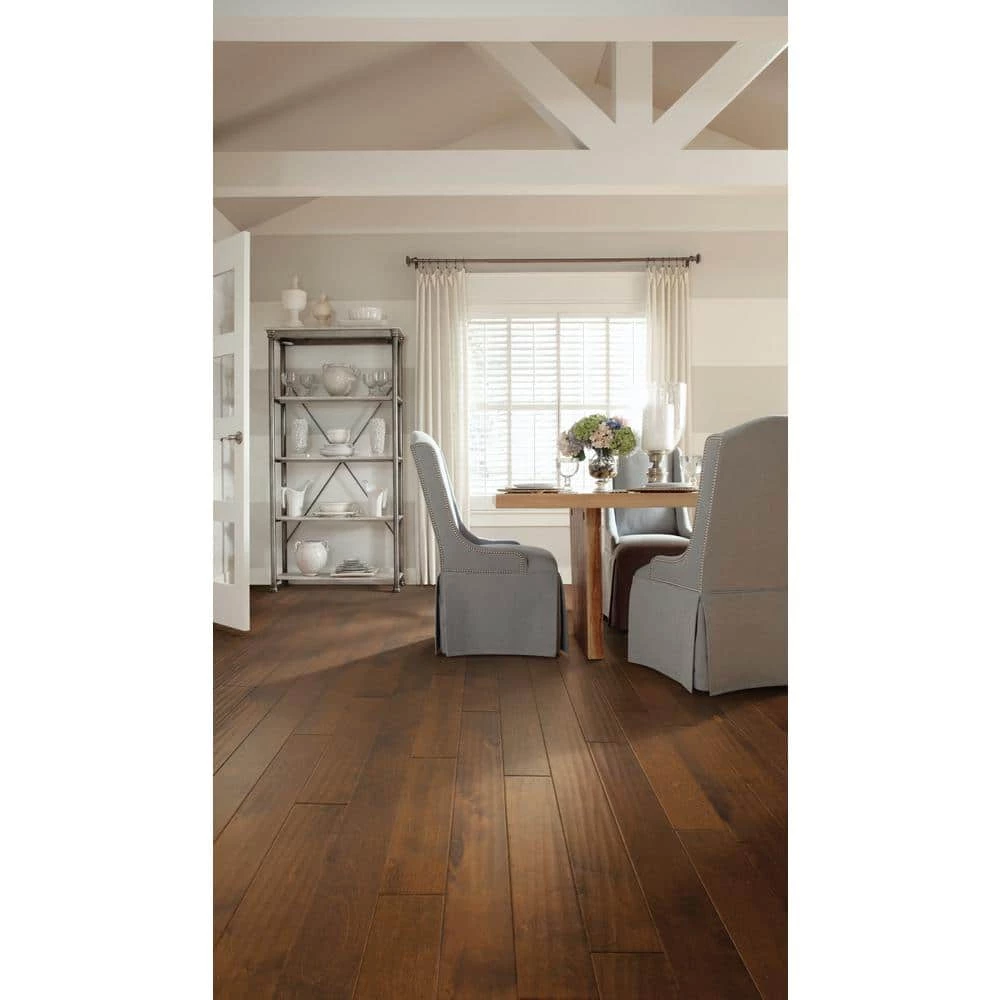 Add charm to your home with Fraser Hardwood Flooring. Prefinished low gloss scraped wood grain texture delivers a smooth look and classic elegance. For lasting use, it features a UV aluminum oxide finish, offering scratch and scuff resistance.