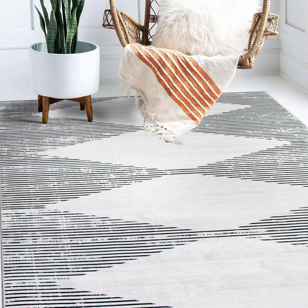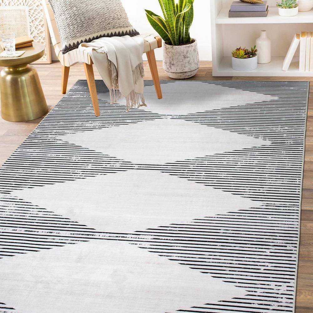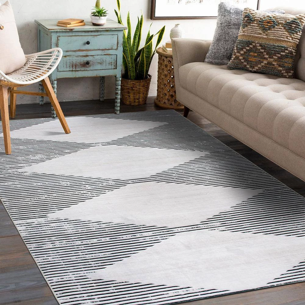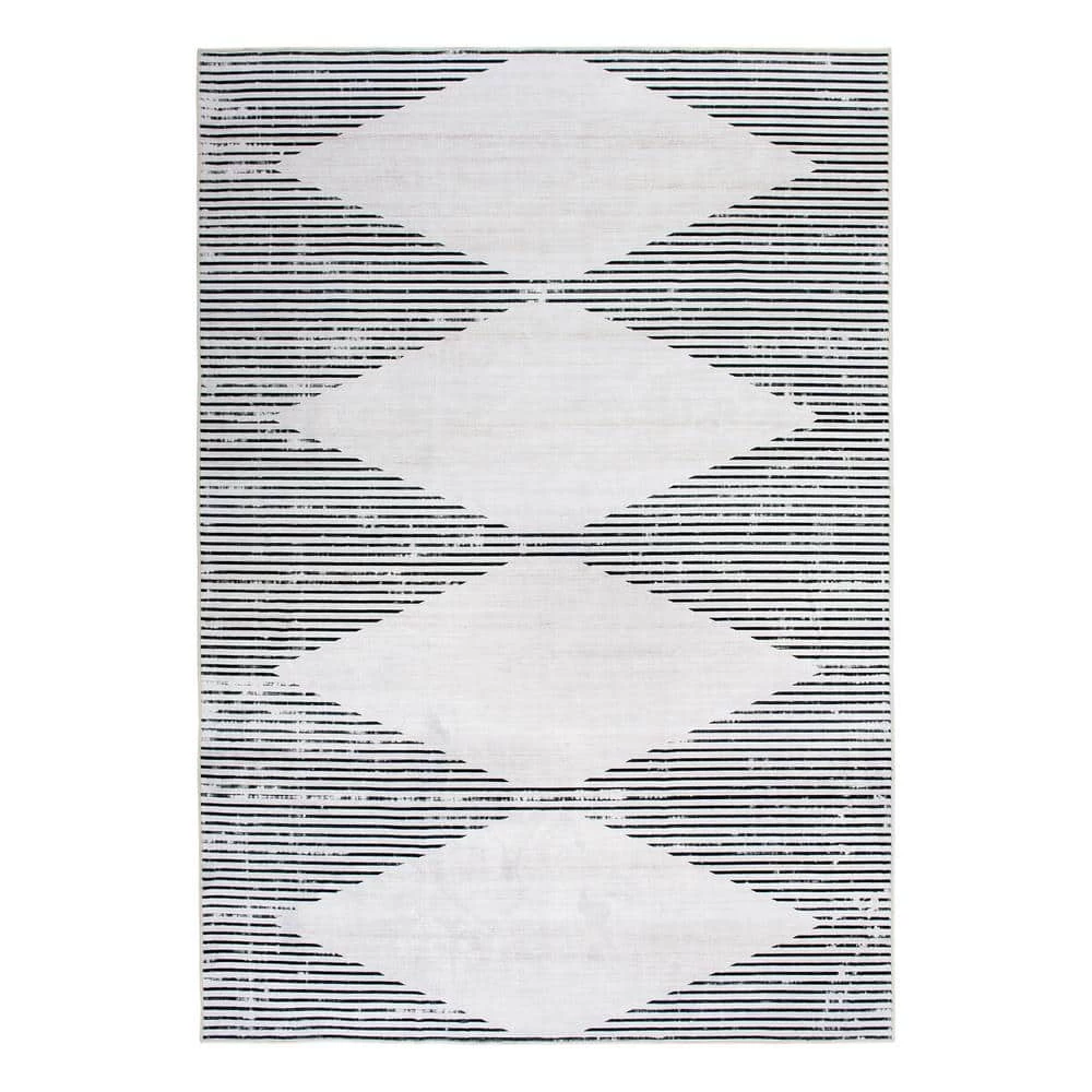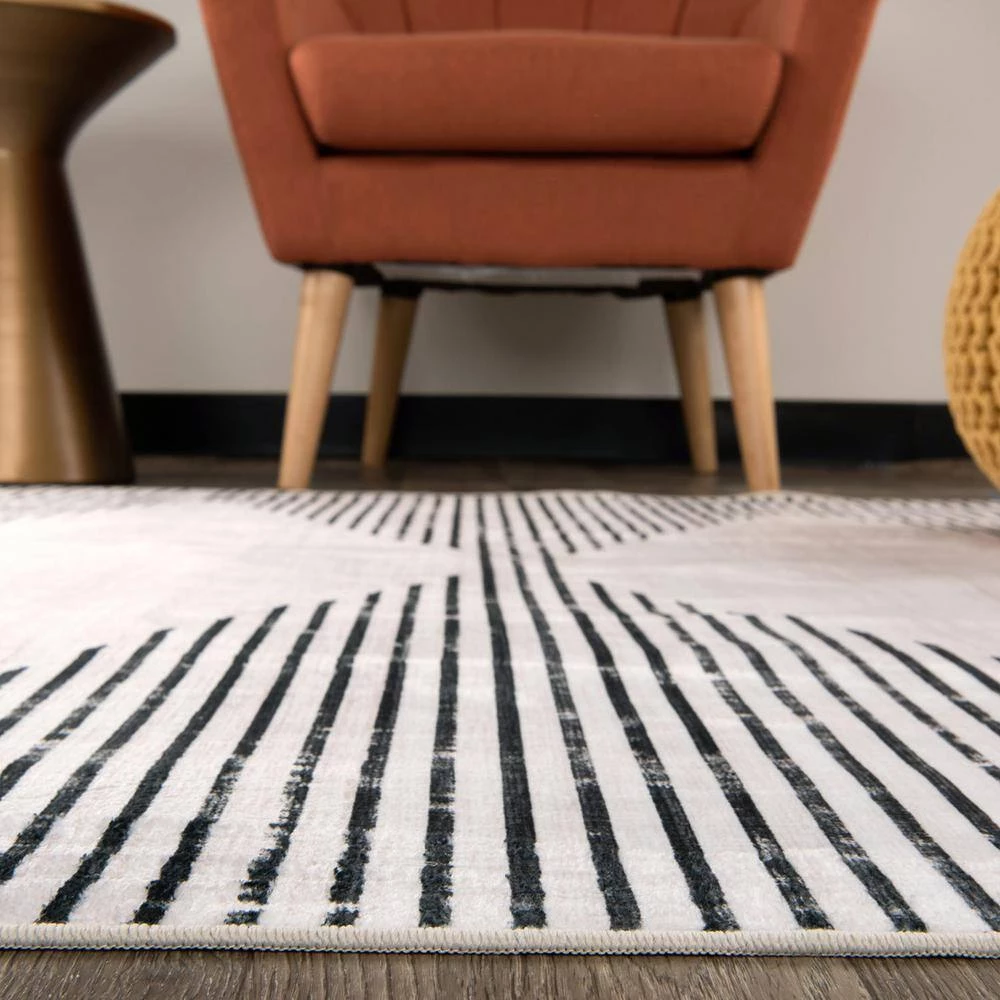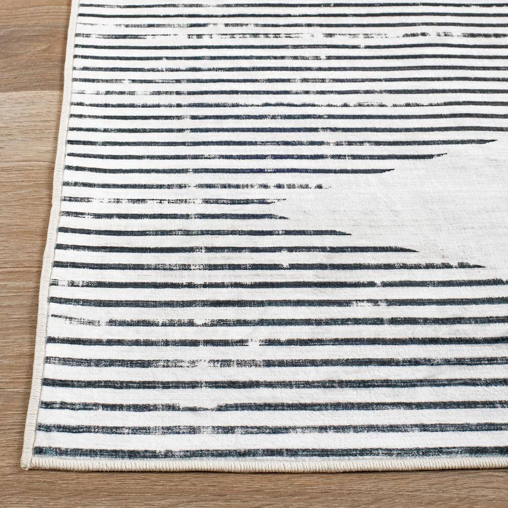 Gray 7 ft. 10 in. x 10 ft. Contemporary Geometric Stripes Machine Washable Area Rug by World Rug Gallery