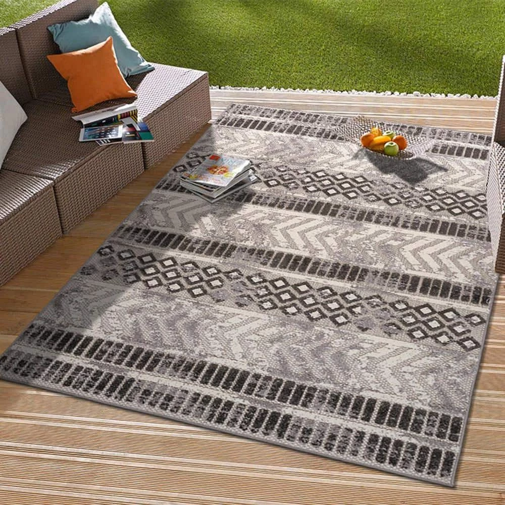 Liven up your indoor or outdoor decor with this bohemian inspired eclectic rug. It features a tribal design coupled and vibrant colors. It is easy to maintain by rinsing with a garden hose with soapy water and air drying. For indoor or outdoor use. This collection offers area rugs that are suitable for all indoor/outdoor spaces. Living room rugs, kitchen rugs, bedroom rugs, rugs for the entryway, office rugs, dorm rugs, dining room rugs, patio rugs, outdoor rugs. Available in a variety of area rug sizes: area rugs 8 ft. x 10 ft. area rug 5 ft. x 7 ft., 2 ft. x 7 ft. runner rugs.