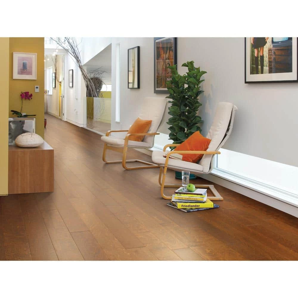 Add charm to your home with Jonestown Hardwood Flooring. Prefinished low gloss scraped wood grain texture delivers a smooth look and classic elegance. For lasting use, it features a UV aluminum oxide finish, offering scratch and scuff resistance.