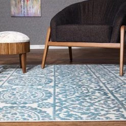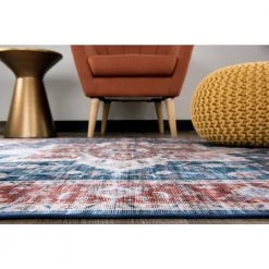 Blue 7 ft. 10 in. x 10 ft. Transitional Distressed Machine Washable Area Rug by World Rug Gallery