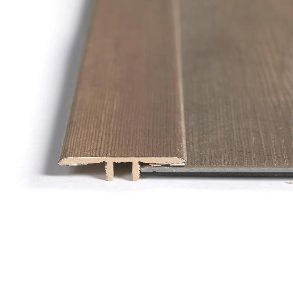 T-Molding will provide a seamless look when transitioning between flooring surfaces and in doorways. It is also used to transition 2 floors of the same height typically installed between rooms or in entryways. This trim piece coordinates with vinyl flooring providing a beautiful completed finished look to any room in your home.